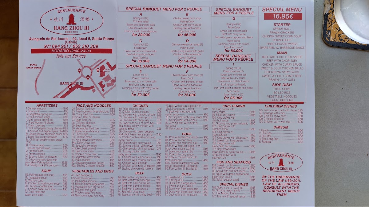 Welcome to Hang Zhou III, a delightful Chinese restaurant nestled in the heart of Santa Ponça. Located on Avinguda del Rei Jaume I, this eatery has quickly become a favorite among locals and visitors alike.